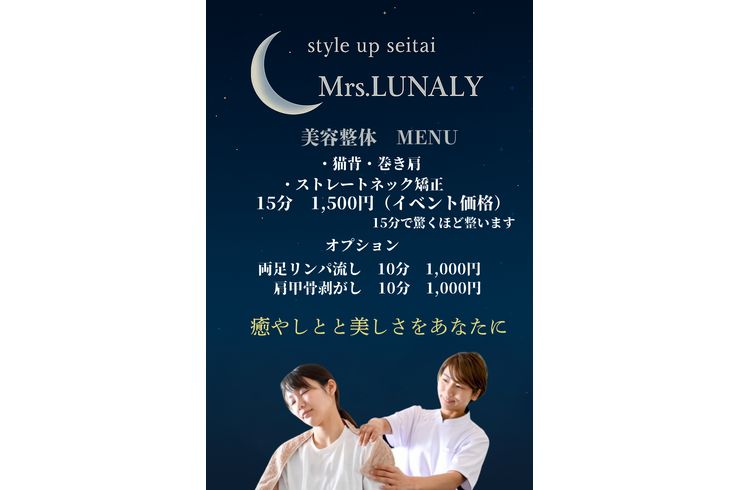 | 初回お試し120分 6,600円 ※アロマは料金に含まれています。※店長長屋の施術は初回お試し8,800円 | 60分 4,500円(税込) |