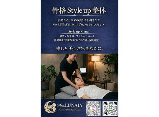 2026/03/11Mrs.LUNALY ◎出店内容◎ 美容整体 ◎料金◎ 頭・肩メイン すっきりコース 10分 1,000円 頭から背中まで style upコース... -