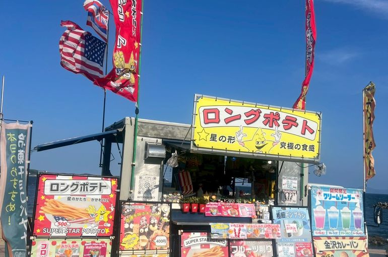 ロングポテト、カレーパン、チョコバナナ、クリームソーダ、いちご飴などの販売